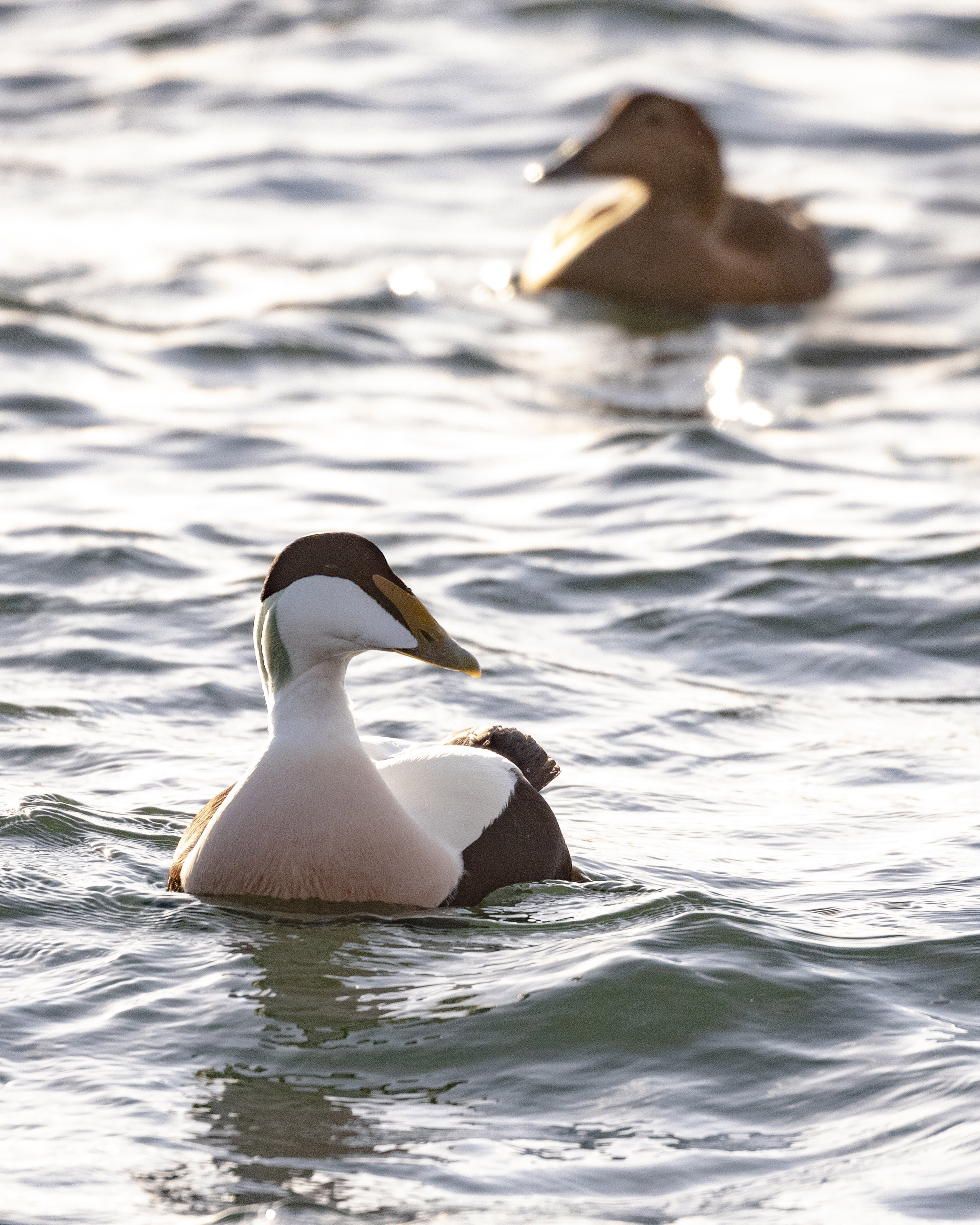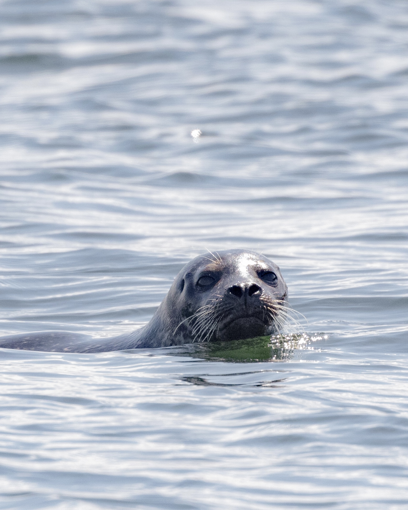 Later in the day I tried my luck at a different spot, settling in a cup of earth in view of several grassy burrows that looked promising. I got distracted by a puffin on the water, some 100ft down. Even from that distance I could spot orange legs beneath the clear surface, so I enjoyed watching it through my binoculars as it bobbed around with its larger neighbours.